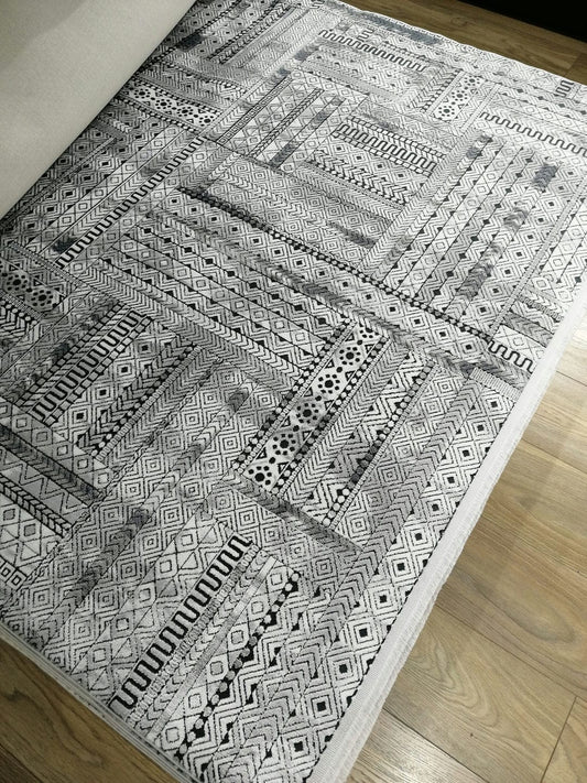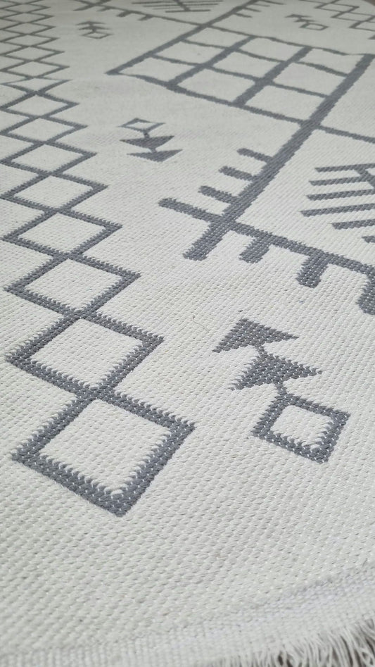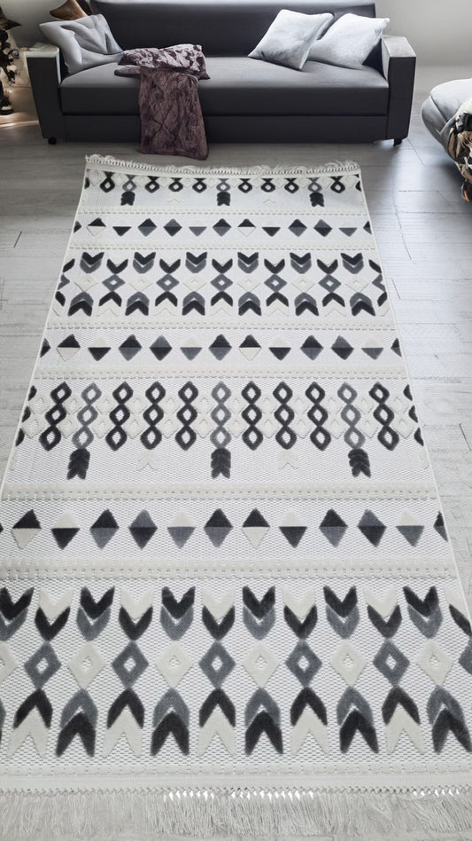 Dekhera Classic Kilim Etnik Desenli Mp111 Beyaz Gri