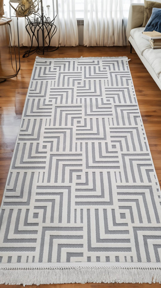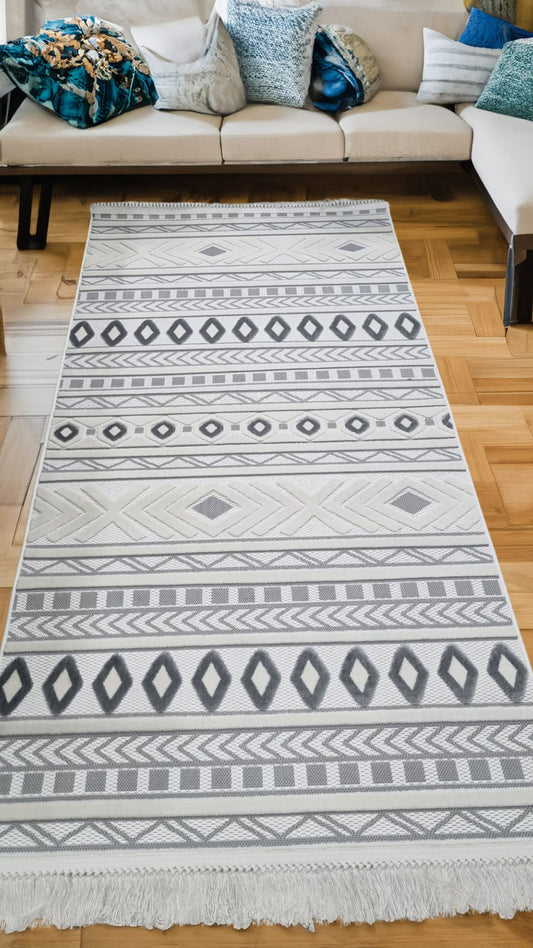Dekhera Elmas Bukle Dokuma Halı 155 Gri Beyaz