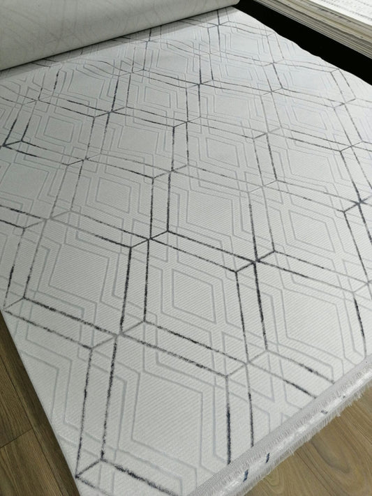 Dekhera Elmas Bukle Dokuma Halı 154 Beyaz Koyu Gri