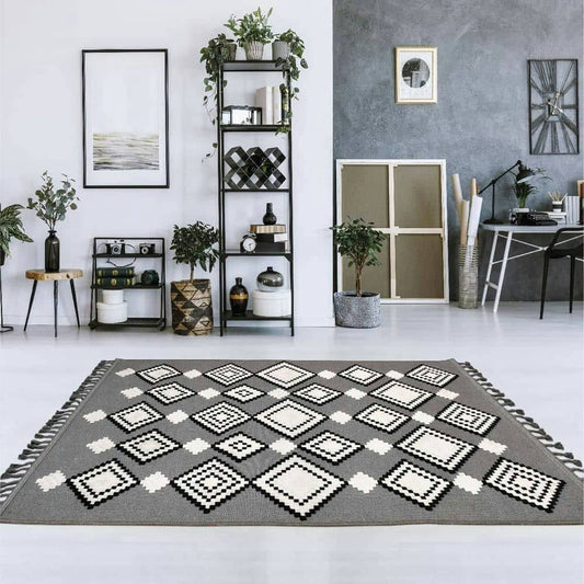 Gri Beyaz Bohem Kilim Dekhera Moderno 9239