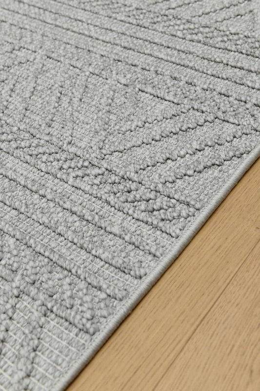 Gri Kabartmalı Örgü Dokuma Halı Dekhera Tecer T02