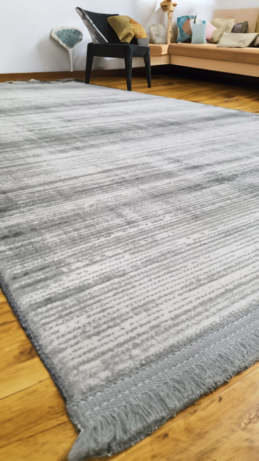 Gri Asimetrik Çizli Halı Dekhera T1064