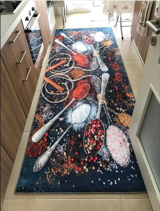3 Boyutlu Mutfak Halısı Kaşık Dekhera F8027