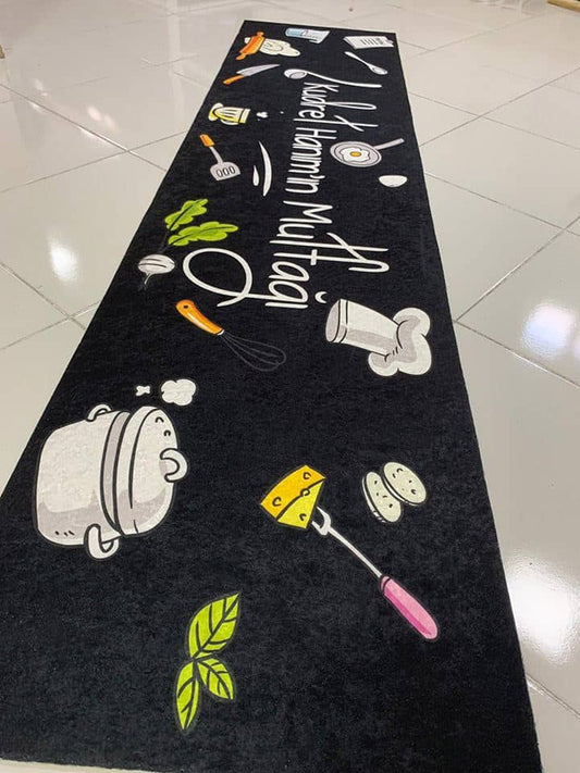 Dekhera İsme Özel Mutfak Halısı Siyah F8037