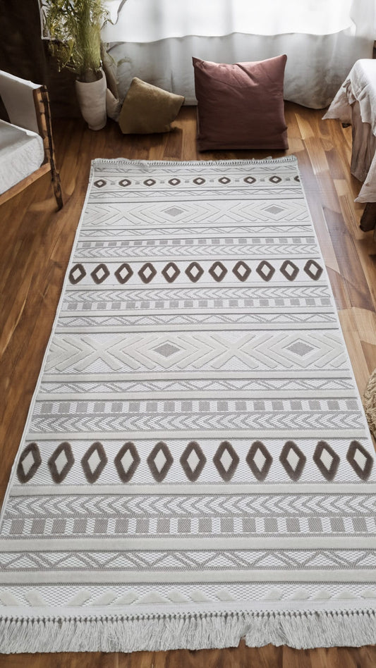 Dekhera Vivere Bukle Dokuma Halı Yumuşak Tuşeli 353 Beyaz Kahve
