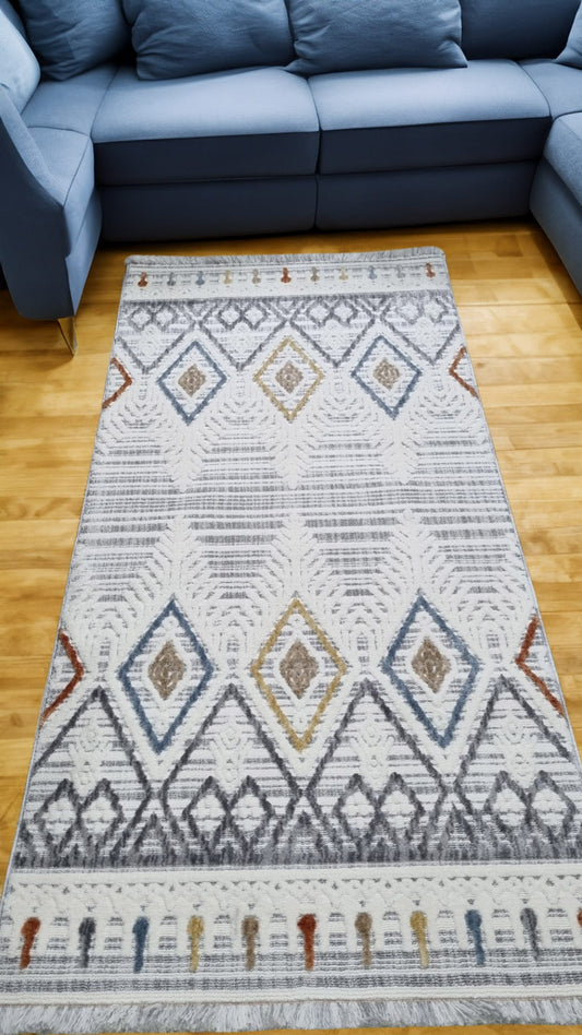 Dekhera Güzide Kalın İskandinav Halı 195C Açık Gri Beyaz