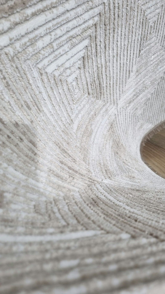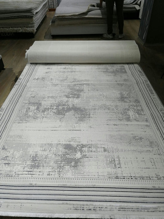 Dekhera Şahika Parlak Tuşeli Makine Halısı Al9517 Beyaz Gri