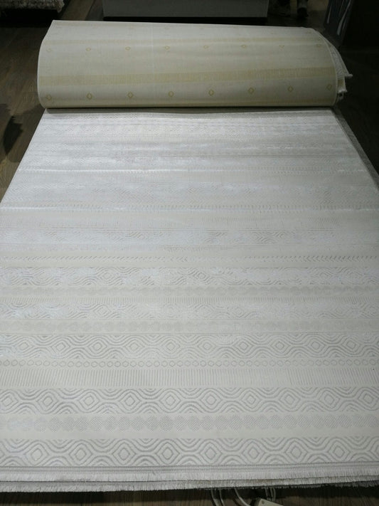 Dekhera Şahika Parlak Tuşeli Makine Halısı Al9516 Beyaz
