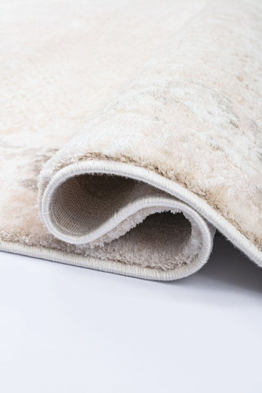 Lüks Kabartmalı Akrilik Halı Dekhera Warble B082 Krem Beyaz
