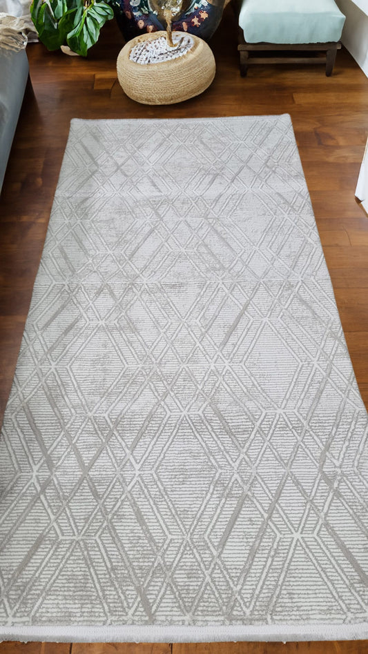 Dekhera Girift Yumuşak Karbartmalı Halı 1755 Krem