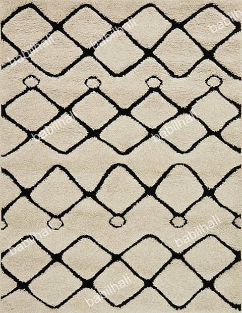 Etnik Kabartmalı Akrilik Halı Dekhera Warble B079 Krem Beyaz