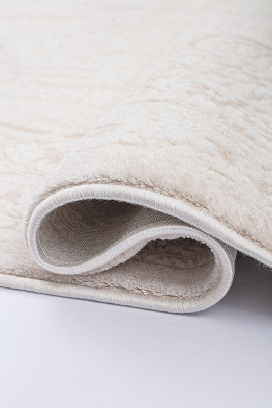 Lüks Kabartmalı Akrilik Halı Dekhera Warble B082 Krem Beyaz