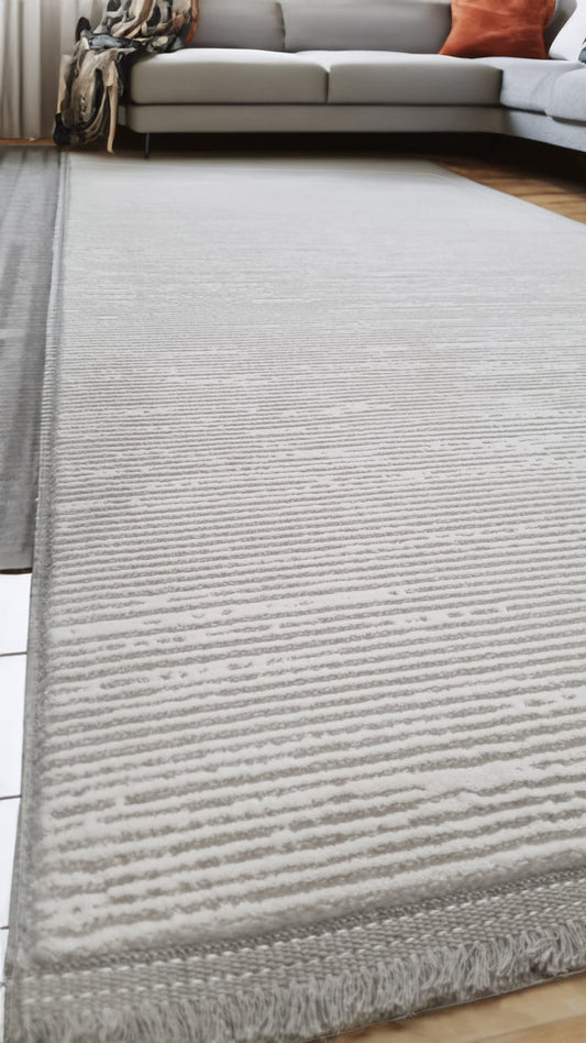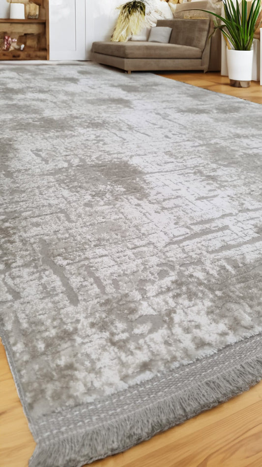 Lüks Tasarım Viskon Halı Dekhera Violent 6088 Gri Krem