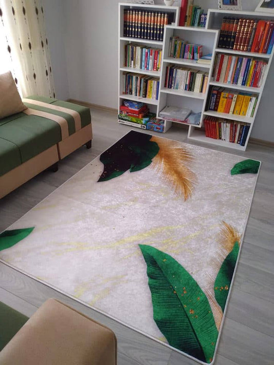 Yaprak ve Kuş Tüyü Desenli Halı Dekhera M3024-1