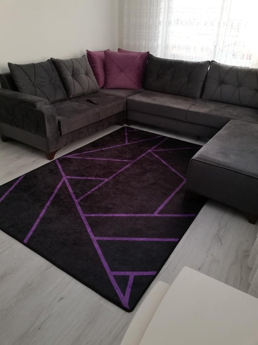 Mor Çizgili Siyah Halı Dekhera T1019-11