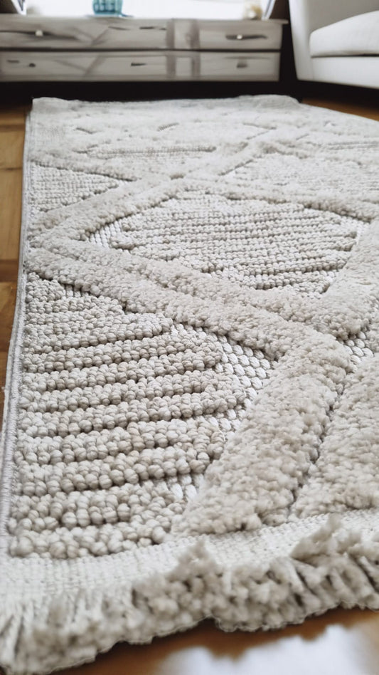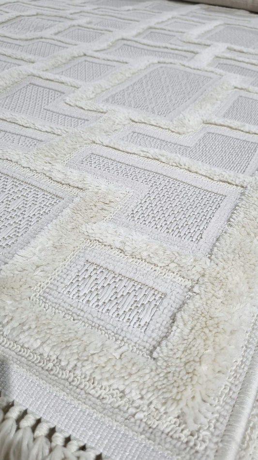 Dekhera Elmas Bukle Dokuma Halı 150 Krem Beyaz