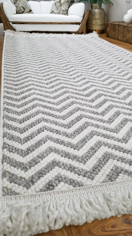 Dekhera Elmas Bukle Dokuma Halı 155 Gri Beyaz