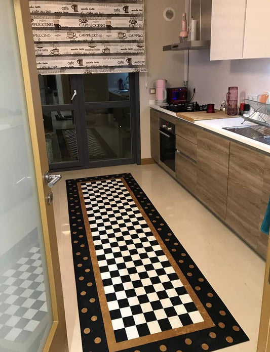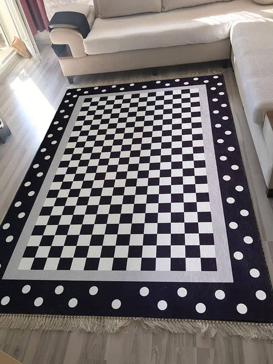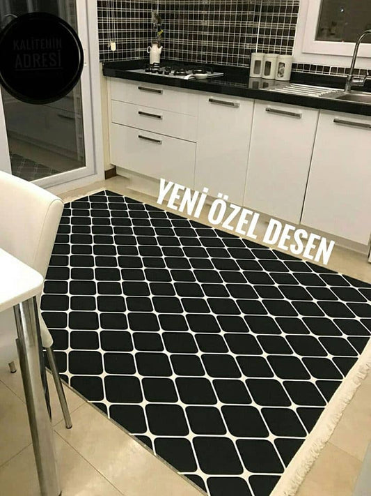 Siyah Desenli Beyaz Yıkanabilir Halı Dekhera T1033-1