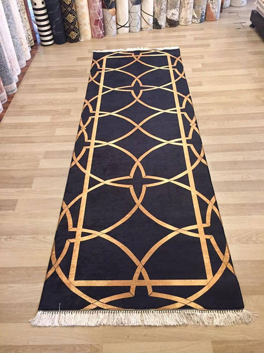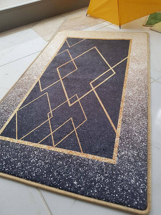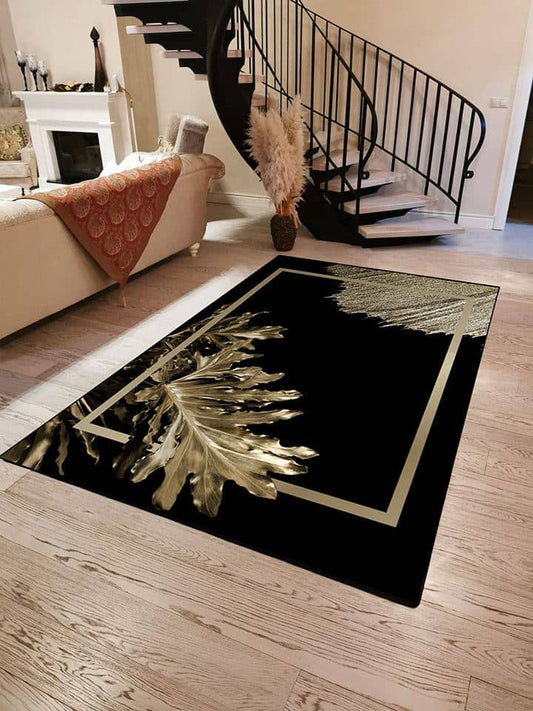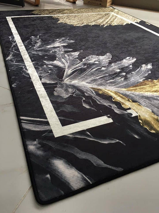 Kuş Tüyü Gold Siyah Halı Dekhera T1025
