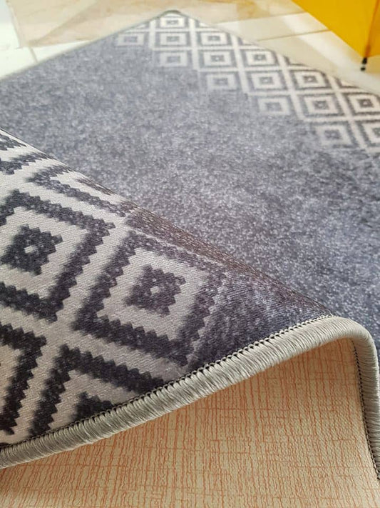 Gri Motifli Siyah Halı Dekhera T1065-1