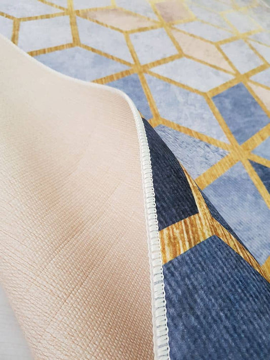 Mavi Prizmalar Kaymaz Halı Dekhera T1060