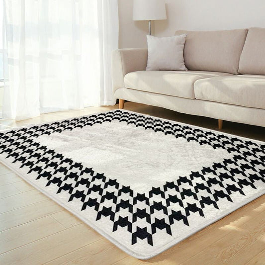 Makinede Yıkanan Siyah Beyaz Halı Dekhera T1054