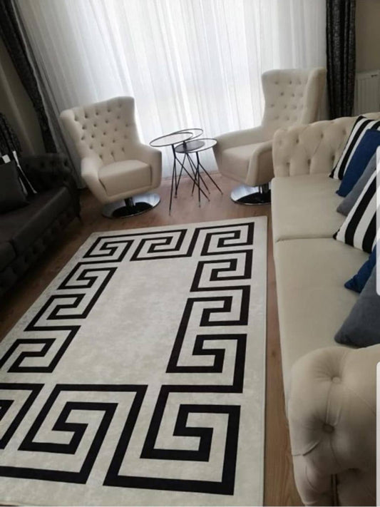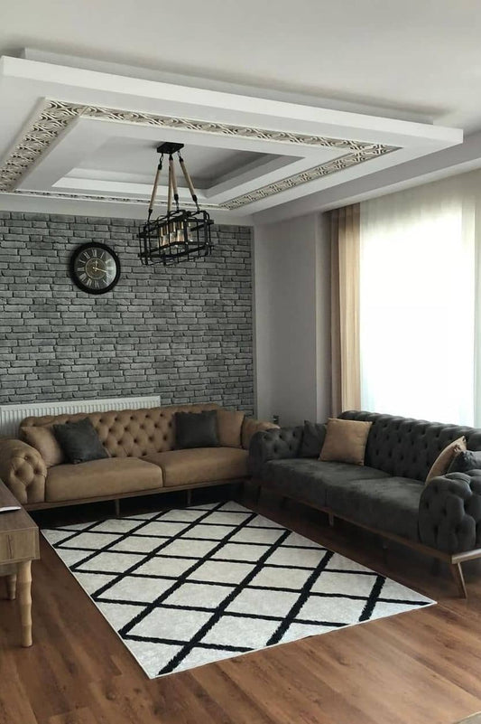 Büyük Prizma Halı Siyah Beyaz Dekhera T1131