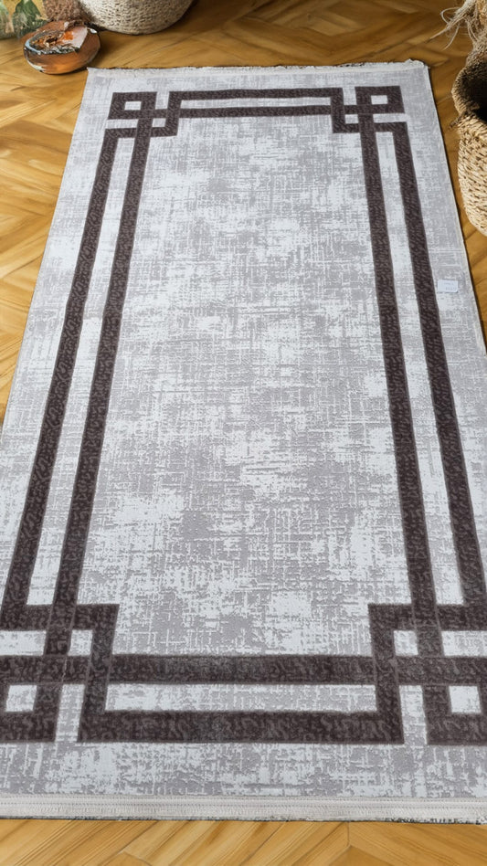 Çerçeveli Viskon Halı Dekhera Vibeux A928 Vizon Siyah