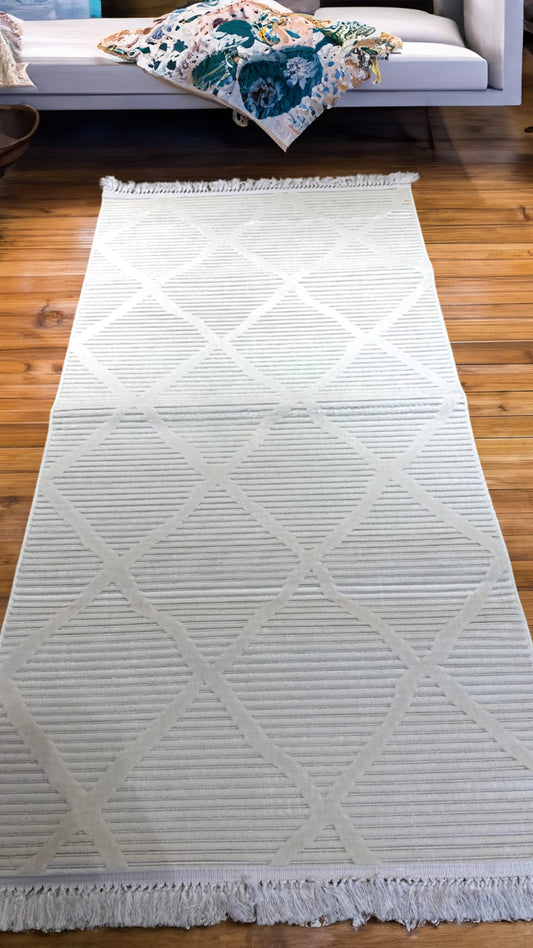 Dekhera Berceste İskandinav Halı Parlak Tuşeli 1550 Beyaz Beyaz